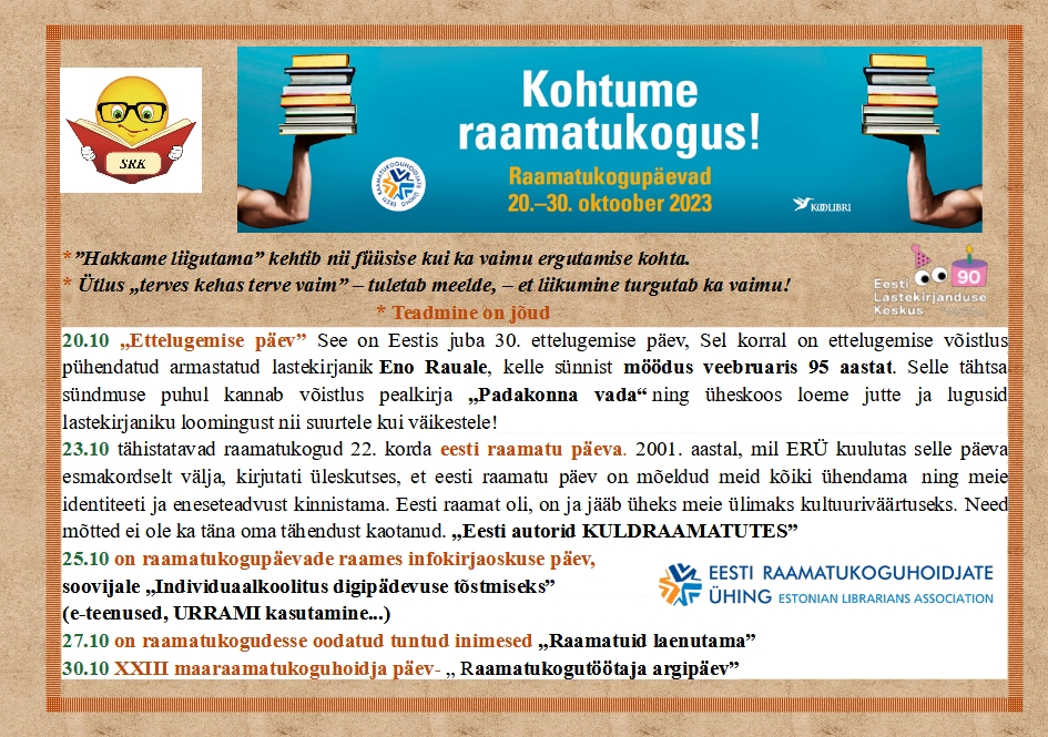 * 20.10-30.10 Raamatukogupäevad. KOHTUME RAAMATUKOGUS!