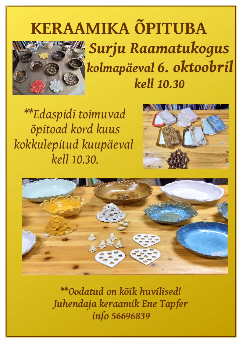 * 06.10 kell 10.30 KERAAMIKA ÕPIRING