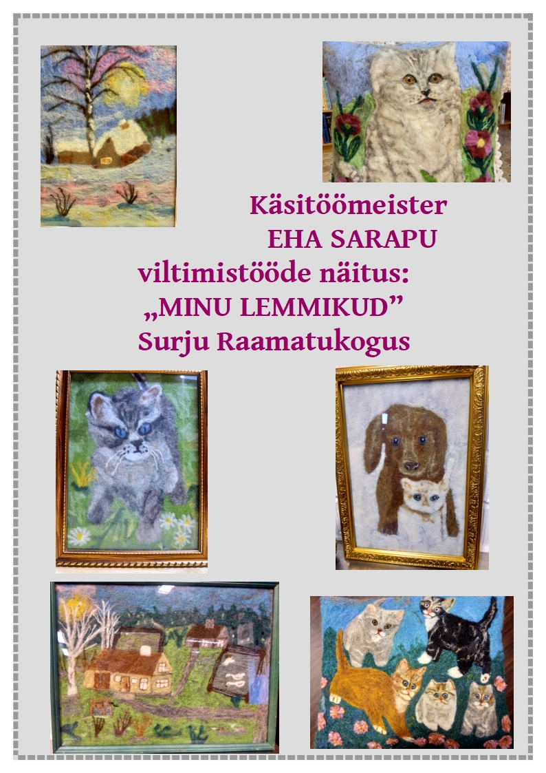 * NÄITUSED: Käsitöömeistri EHA SARAPU viltimistööde näitus "MINU LEMMIKUD"