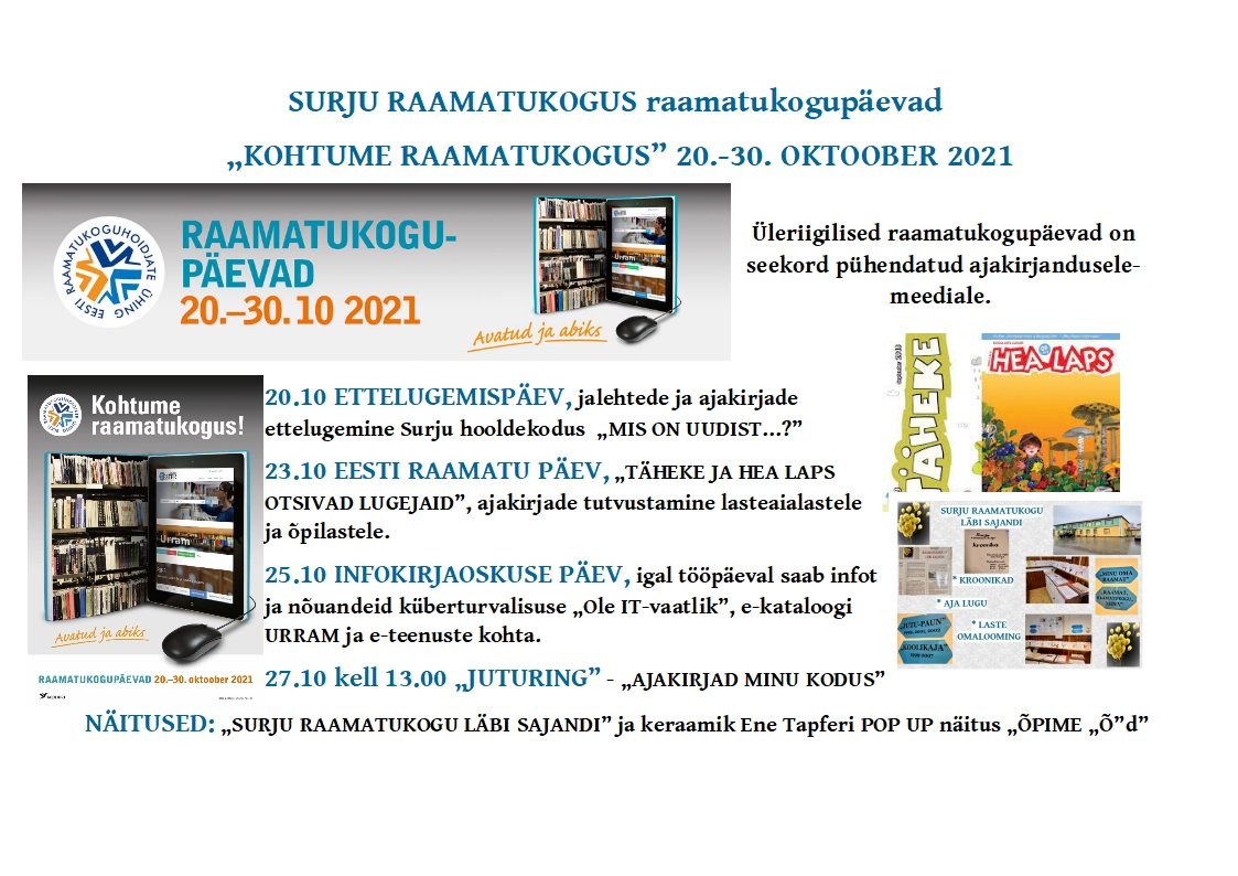 * 20.-30.10 Üleriigilised raamatukogupäevad KOHTUME RAAMATUKOGUS