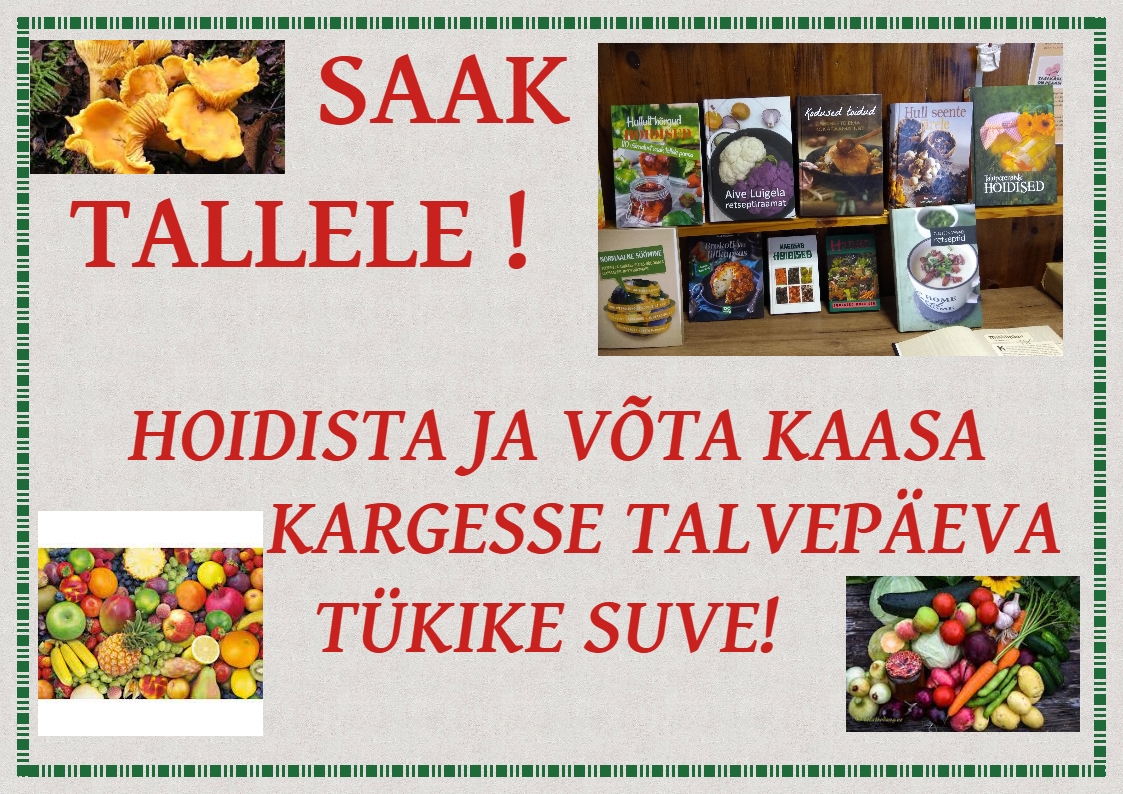 * 01.09 "SAAK TALLELE! - Hoidista ja võta kargesse talvepäeva kaasa tükike suve!" vp