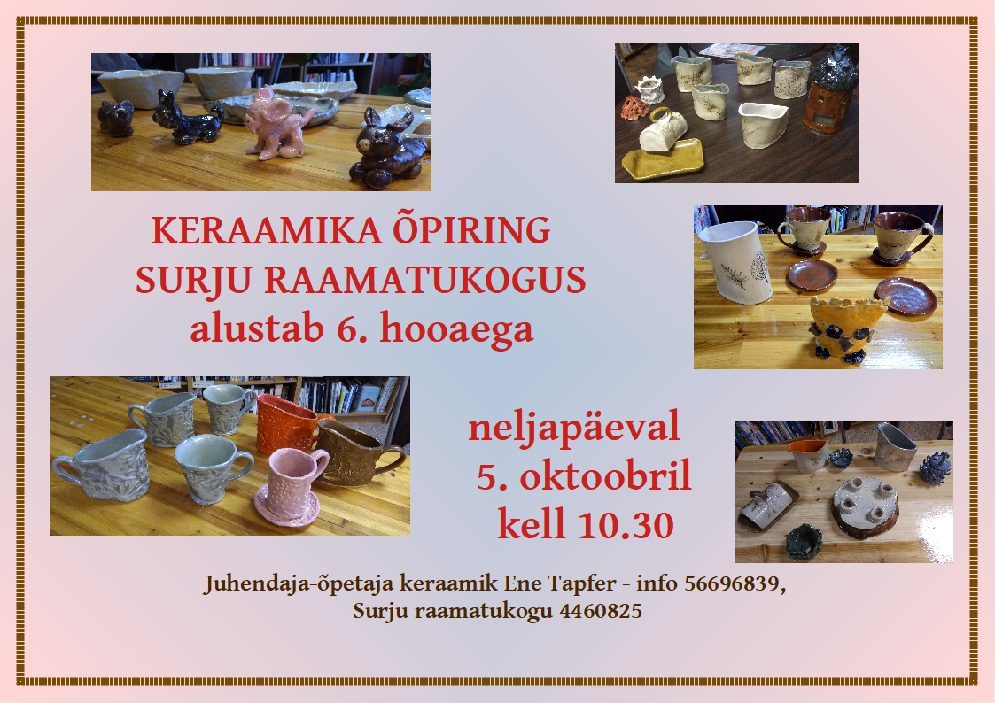 * 05.10 kell 10.30 KERAAMIKA ÕPITUBA!