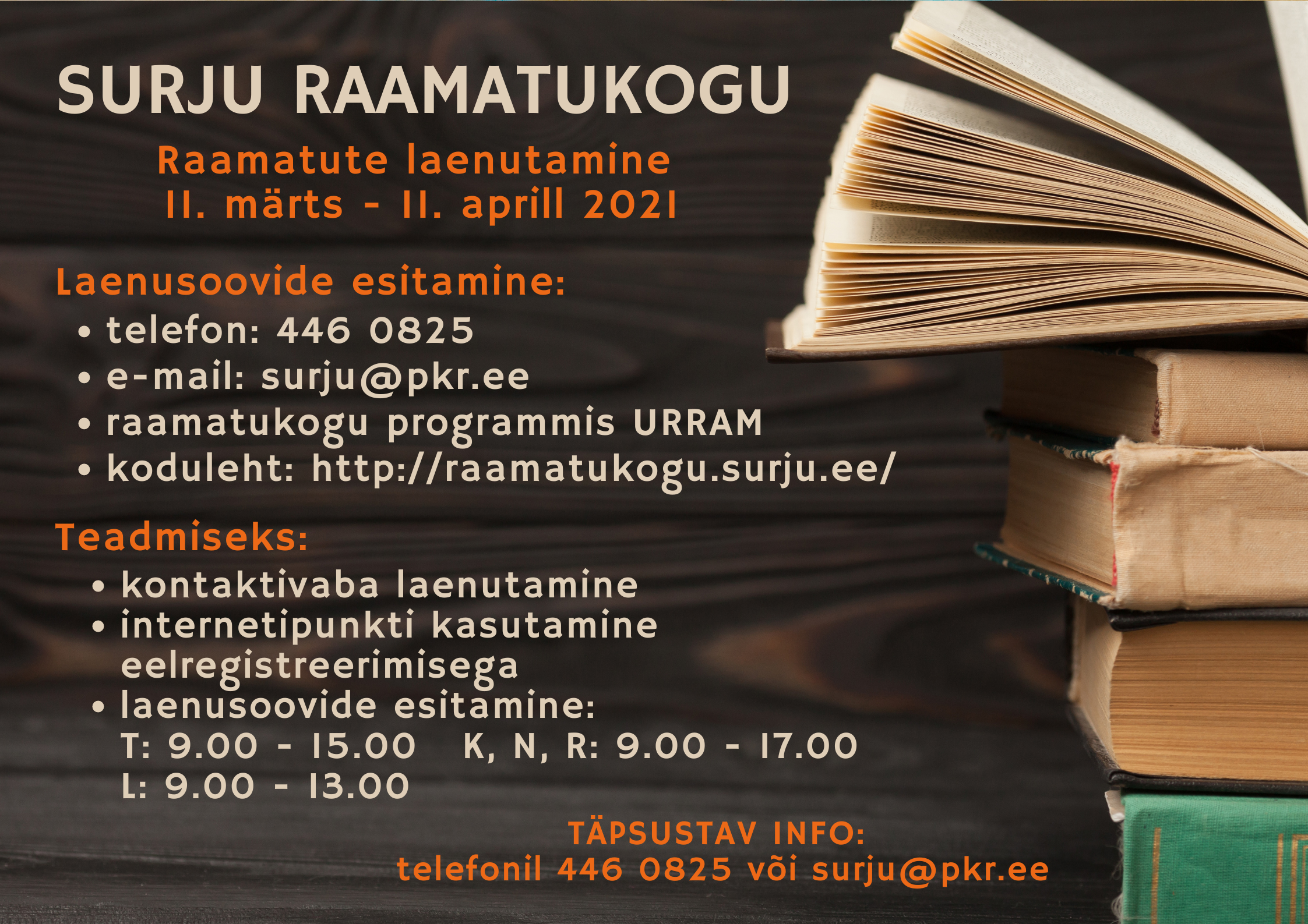 * Raamatukogutöö korraldus, alates 2021a. aprillist
