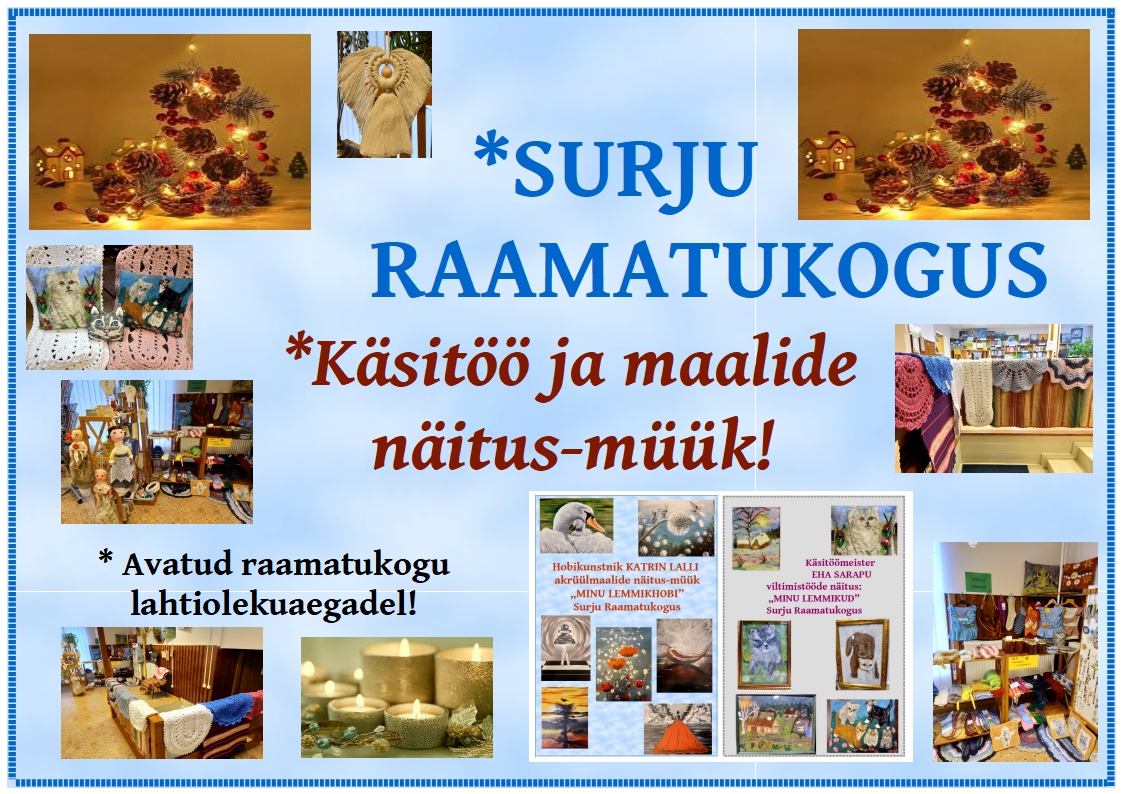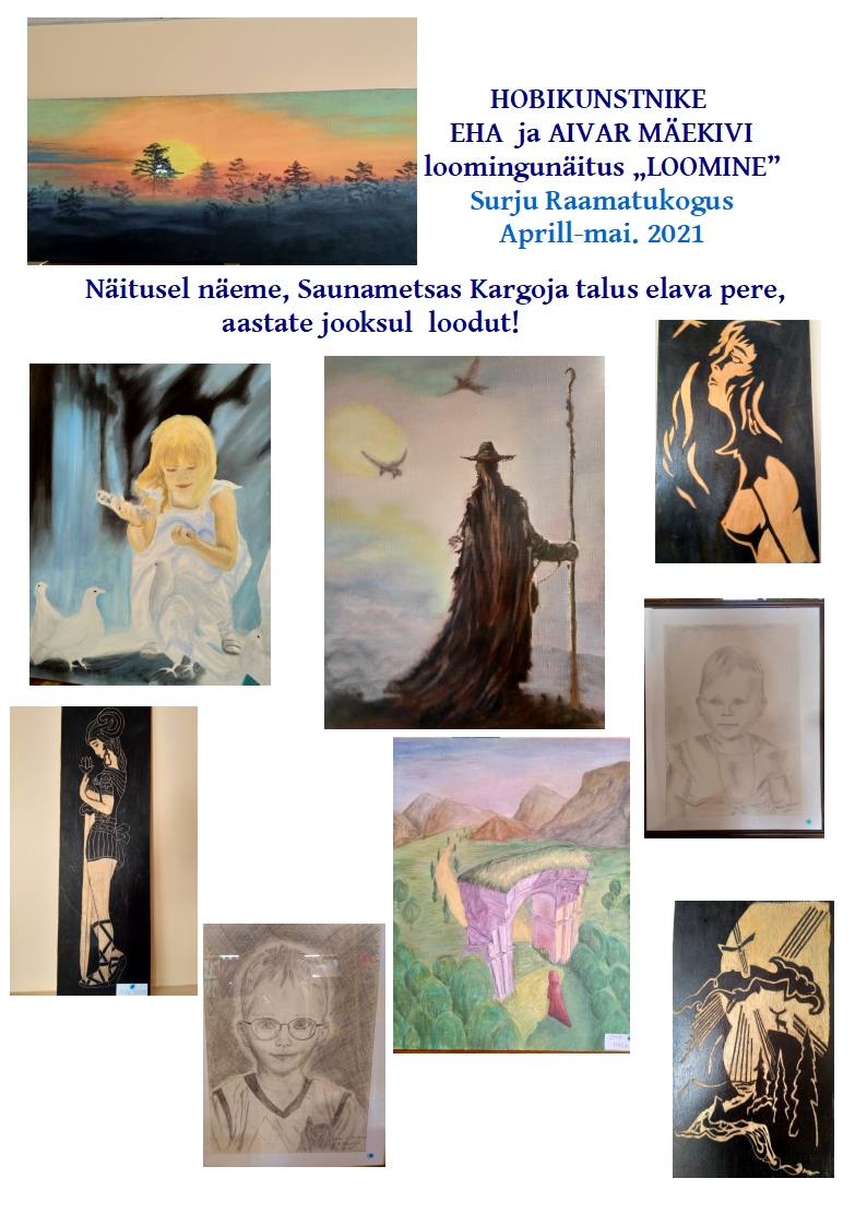 * Aprill-mai Surju Raamatukogus näeb hobikunstnike EHA JA AIVAR MÄEKIVI loomingunäitust "LOOMINE"